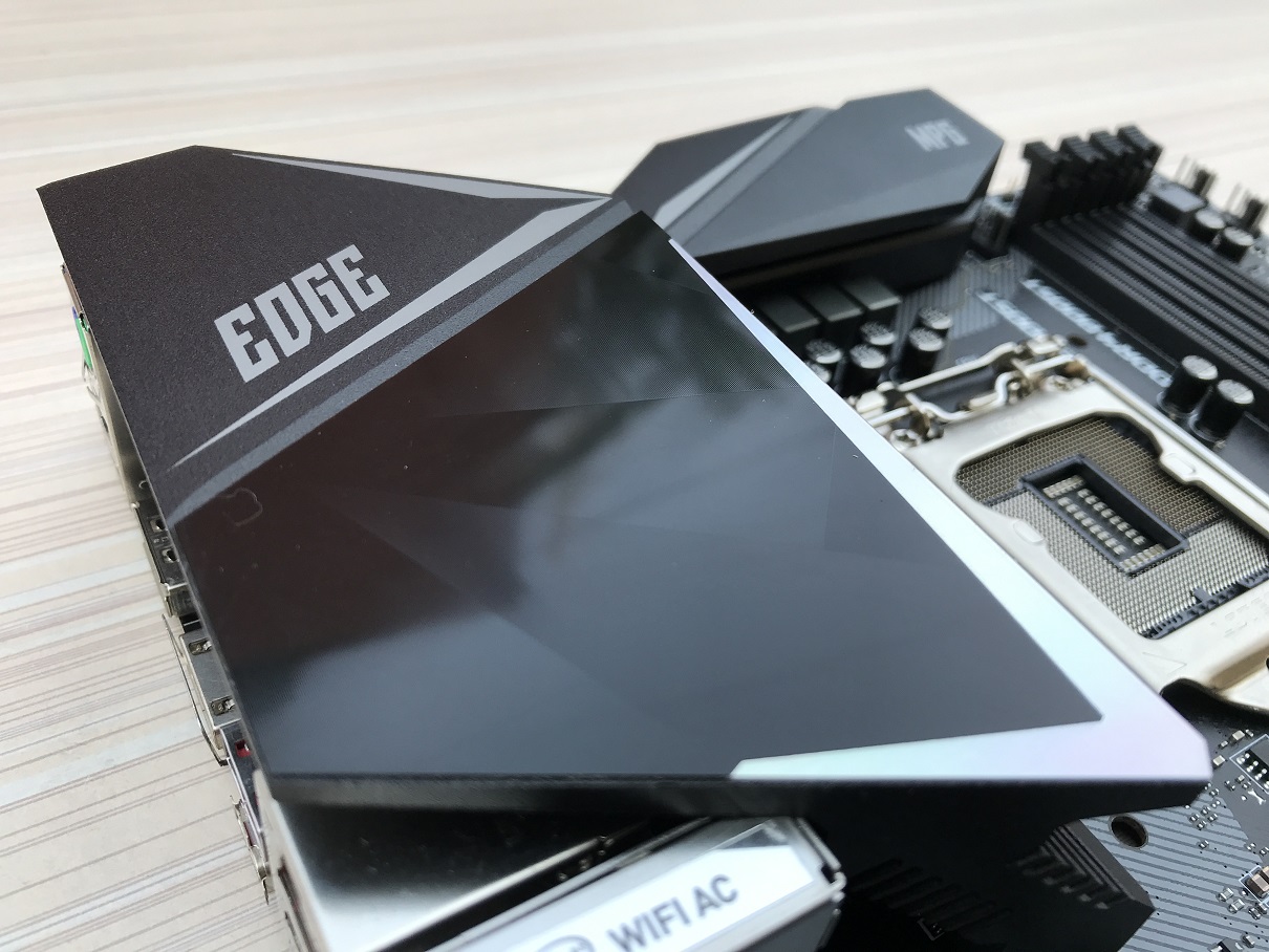 The VRM MOSFETs are cooled by ceramic headsinks out of which the one bearing the Edge logo and on the IO side is extended and fully made of ceramic and not plastic to effectively cool the components under load. I expect decent temperatures here considering the physical size of these heatsinks and so will be keeping a close watch on these in our testing section.